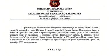 Саопштење поводом Пресуде Црквеног суда